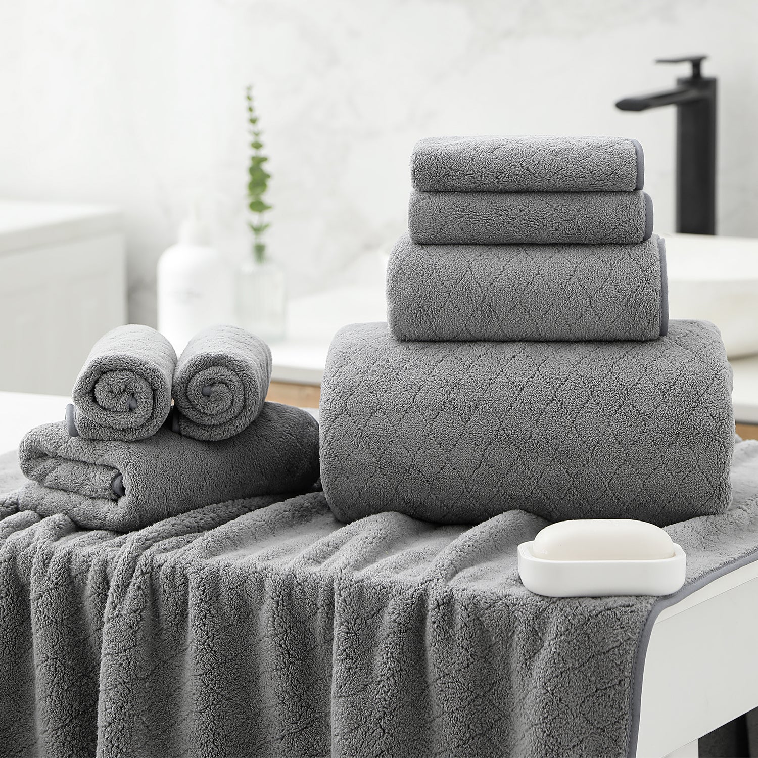 The bath towels are made from 100% microfiber fabric,warm and fluffy plush towels bring you a comfortable experience,the premium quality plush material is gentle and skin-friendly so that you will get comfortness after each bathing.